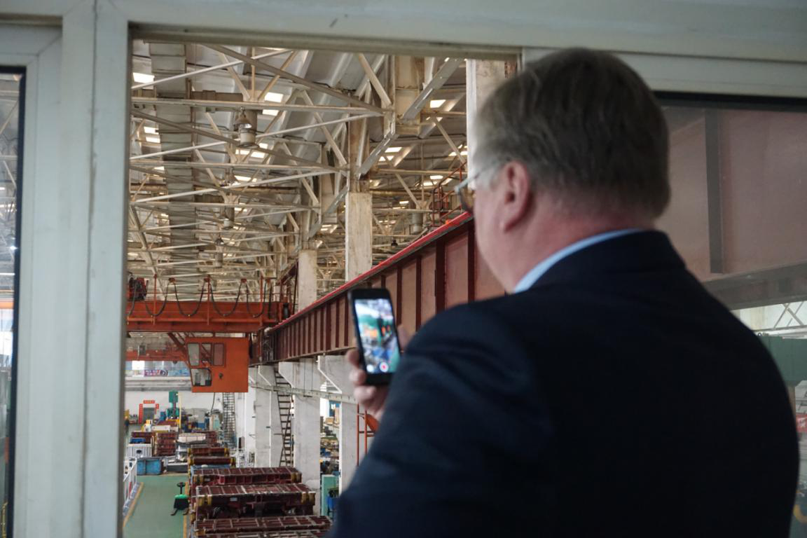 謝爾蓋先生首先查看了自動化輪輞生產線的生產進度,考察了汽車模具加工制造能力,又參觀了汽車零部件生產車間,對小鴨精工的實力表示充分肯定,在參觀路上謝爾蓋先生連連感嘆,不斷對精工的技術能力豎起大拇指,不時停下腳步,拿出手機要合影留念,并強烈表示希望與精工深化合作,進一步拓寬合作范圍。