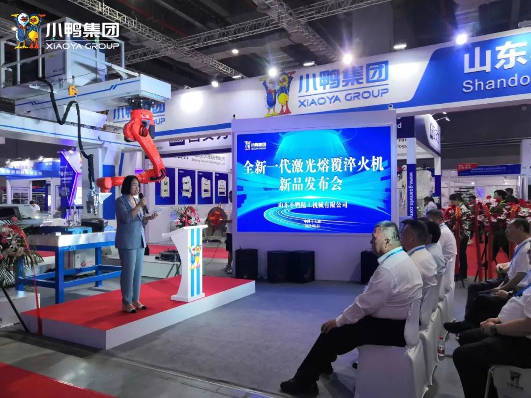 展會(huì)上,小鴨精工舉辦了“厚積薄發(fā) 創(chuàng)想未來”為主題的全新一代激光熔覆淬火機(jī)新品發(fā)布活動(dòng),小鴨精工新品發(fā)布官帶來復(fù)雜曲面免編程機(jī)器人熔覆淬火設(shè)備,可以完美替代多項(xiàng)工序,只需要幾個(gè)簡(jiǎn)單的在線操作就可以將機(jī)器人的軌跡規(guī)劃完成,徹底顛覆傳統(tǒng)的編程模式。本場(chǎng)發(fā)布會(huì)吸引了特邀嘉賓、行業(yè)協(xié)會(huì)及相關(guān)廠商代表等總計(jì)百余人的參與。