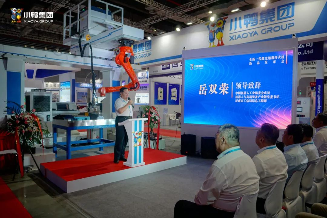 工業(yè)與自動(dòng)化專家、全國(guó)政協(xié)原常委、山東省政協(xié)原副主席李德強(qiáng),山東省人民政府駐上海辦事處二級(jí)巡視員趙國(guó)忠,中國(guó)機(jī)器人工業(yè)編委會(huì)成員、機(jī)器人與高端裝備產(chǎn)業(yè)鏈黨委書記、機(jī)器人與高端裝備產(chǎn)業(yè)協(xié)會(huì)戰(zhàn)略委員會(huì)主任、濟(jì)南市工信局原總工程師岳雙榮致歡迎辭,祝賀小鴨精工新一代激光熔覆淬火機(jī)新產(chǎn)品發(fā)布會(huì)順利舉辦。