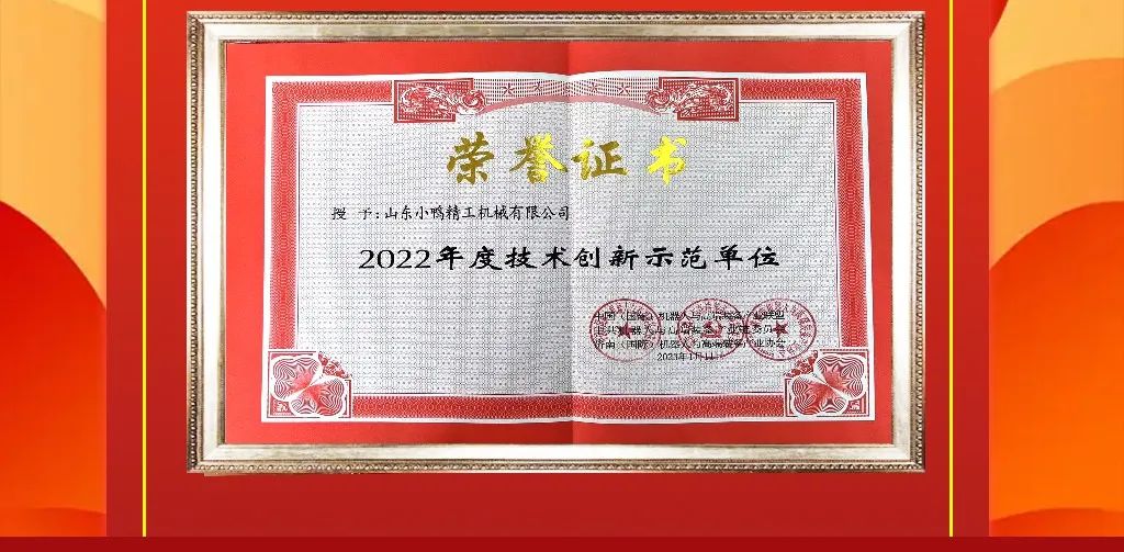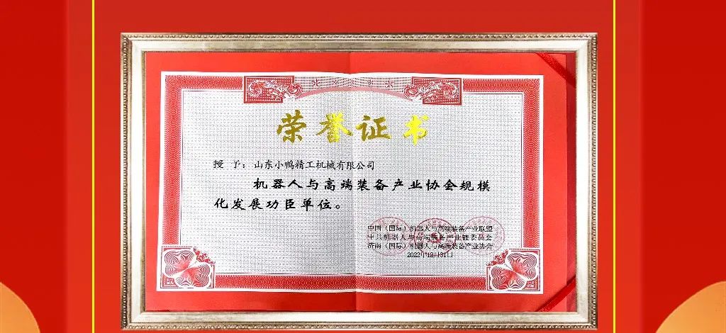 近日,山東小鴨精工機(jī)械有限公司榮獲由中國(guó)(國(guó)際)機(jī)器人與高端裝備產(chǎn)業(yè)聯(lián)盟、中共機(jī)器人與高端裝備產(chǎn)業(yè)鏈委員會(huì)和濟(jì)南( 國(guó)際)機(jī)器人與高端裝備產(chǎn)業(yè)協(xié)會(huì)共同頒發(fā)的“機(jī)器人與高端裝備產(chǎn)業(yè)協(xié)會(huì)規(guī)模化發(fā)展功臣位”“2022年度產(chǎn)業(yè)鏈?zhǔn)痉秵挝弧薄?022年度技術(shù)創(chuàng)新示范單位”三項(xiàng)榮譽(yù)稱號(hào)。