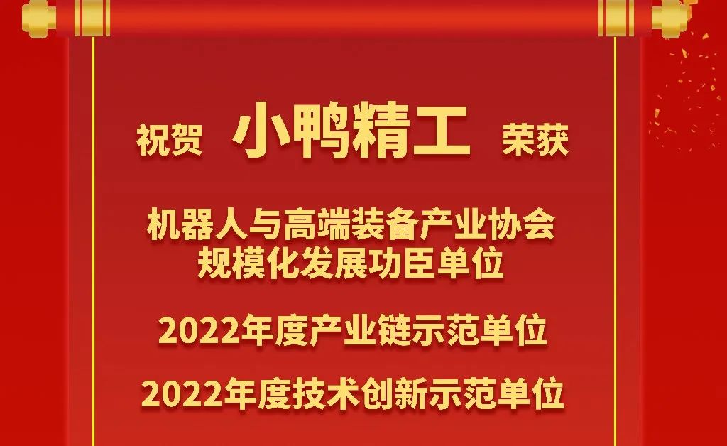 喜報(bào)!小鴨精工獲2022年度產(chǎn)業(yè)鏈?zhǔn)痉秵挝坏热?xiàng)榮譽(yù)稱號(hào)