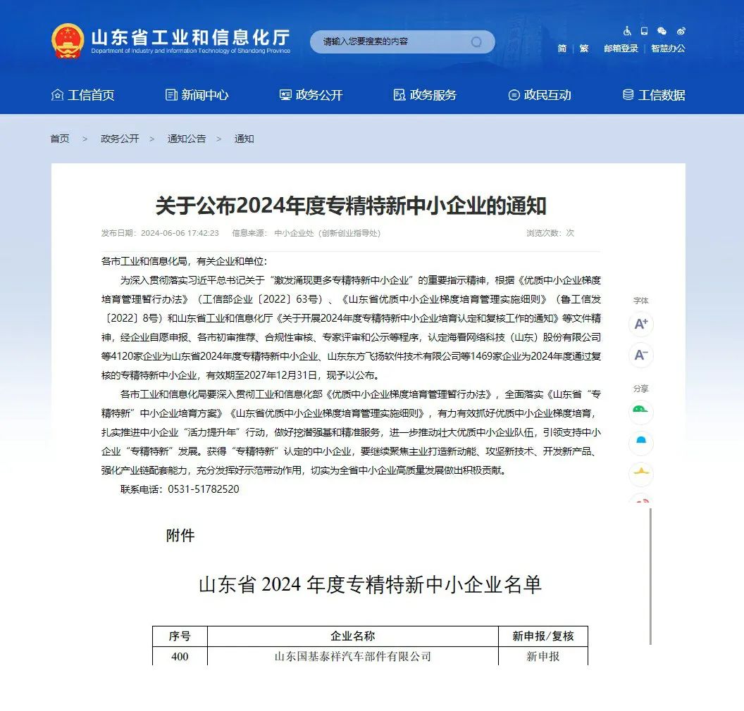 專精特新是特指具有“專業化、精細化、特色化、新穎化”特征的企業。在山東省2024年度通過復核的專精特新中小企業中,小鴨精工車橋生產基地(國基泰祥廠區)名列其中。